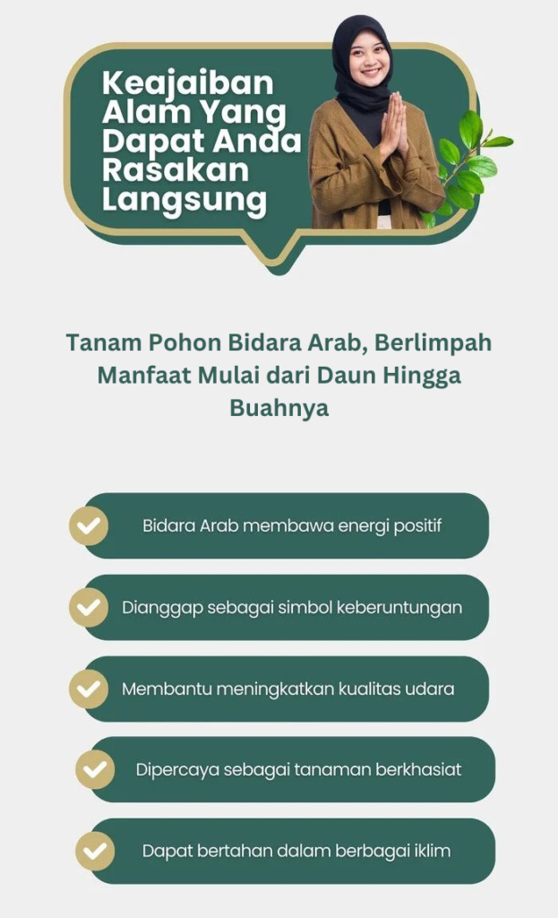 Senyawa yang terkandung dalam daun Bidara Arab sangat dipercaya bermanfaat untuk kesehatan rohani maupun jasmani anda.